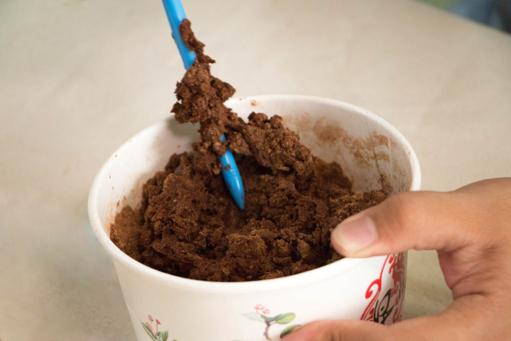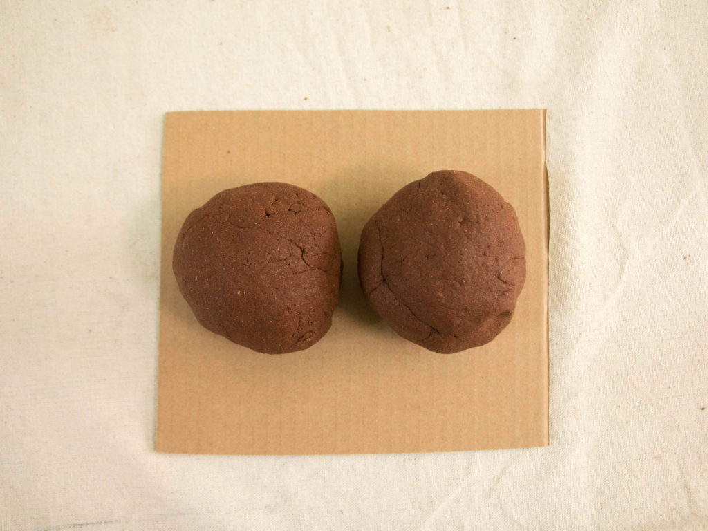 將香灰黏土揉成兩球圓球,其中一顆可以用塑膠袋包起以防乾掉